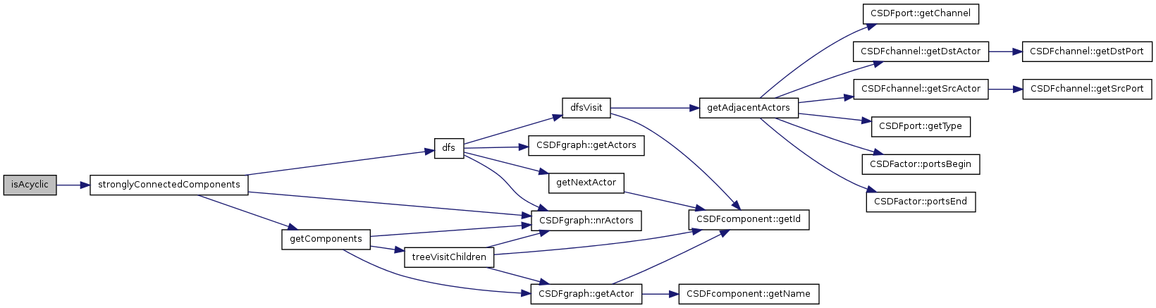isAcyclic () The function returns true of the SDF graph is acyclic. Else it returns false.