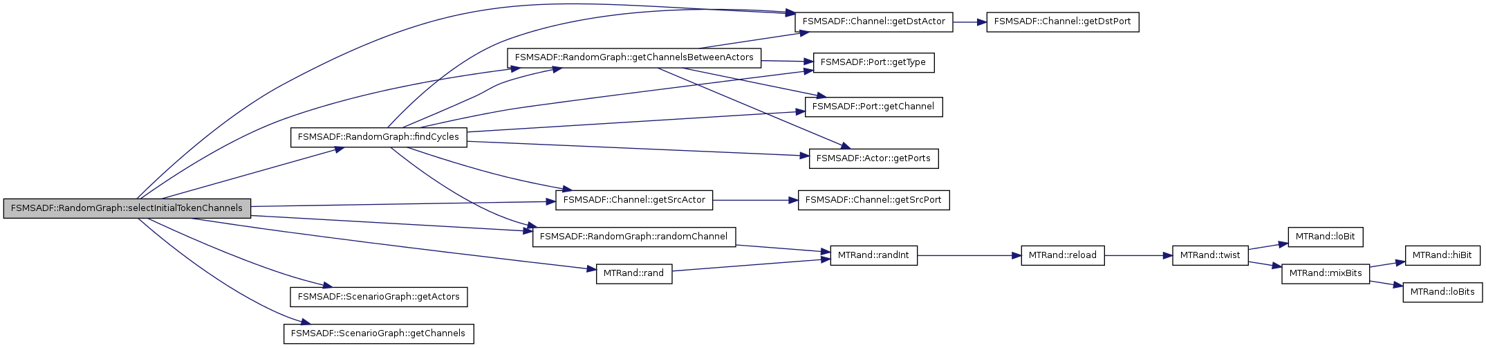 selectInitialTokenChannels() The function selects a random set of channels on which initial tokens can be stored. It is guaranteed that at least one channel is selected from each cycle in the graph.