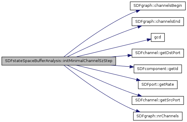 References c, SDFgraph::channelsBegin(), SDFgraph::channelsEnd(), gcd(), SDFchannel::getDstPort(), SDFcomponent::getId(), SDFport::getRate(), SDFchannel::getSrcPort(), minSzStep, and SDFgraph::nrChannels().