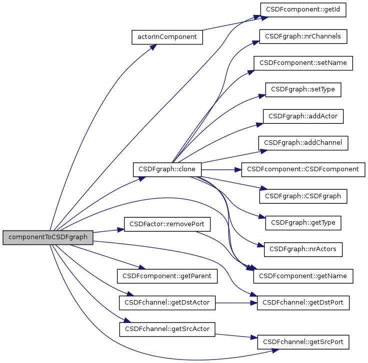 componentToSDFgraph () The function returns an SDF graph containing all actors and channels inside the component.
