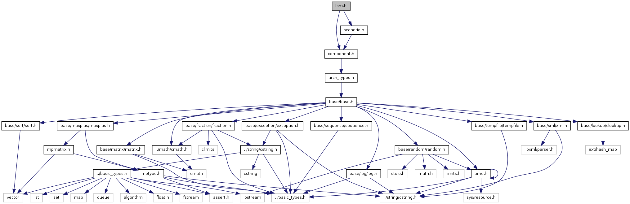 Include dependency graph for fsmsadf/base/fsm.h: