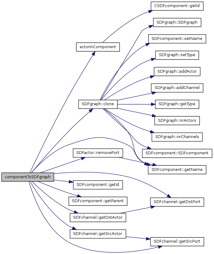 componentToSDFgraph () The function returns an SDF graph containing all actors and channels inside the component.