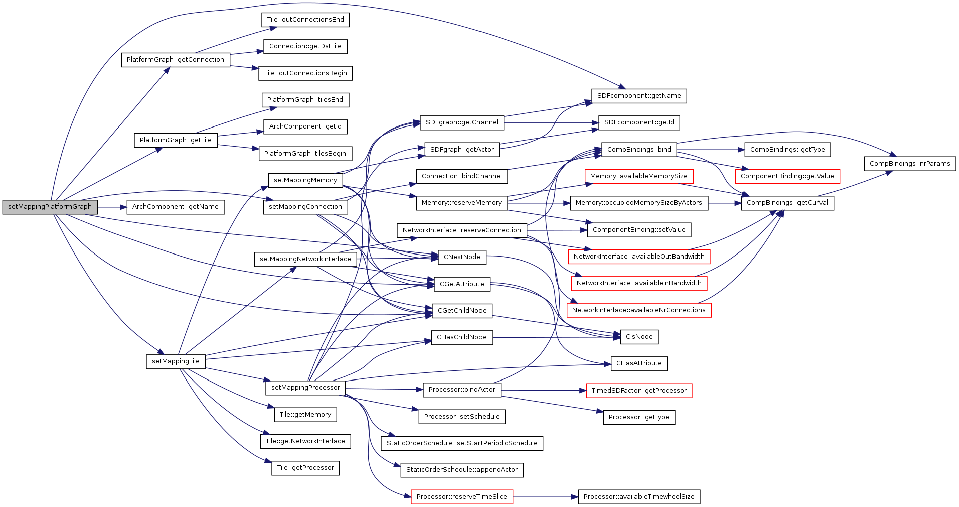 setMappingPlatformGraph () The function sets the mapping of the application graph to the platform graph as specified in the mapping node.