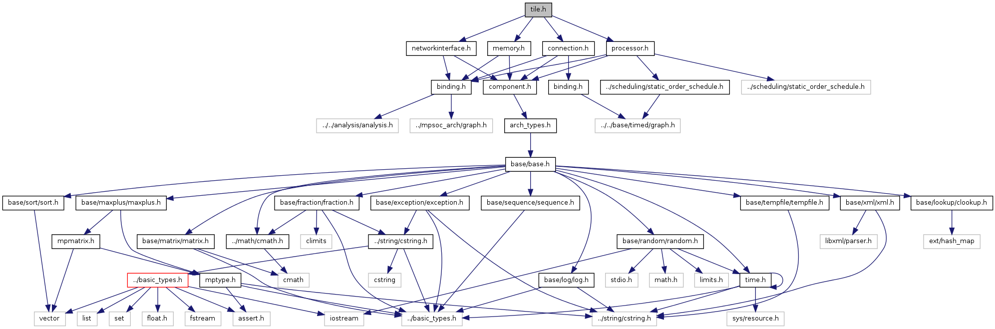 Include dependency graph for sdf/resource_allocation/mpsoc_arch/tile.h: