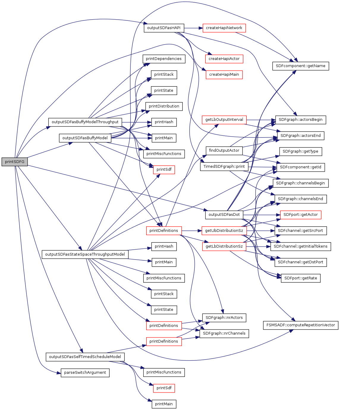 printSDFG () The function outputs the SDF graph in the requested format.